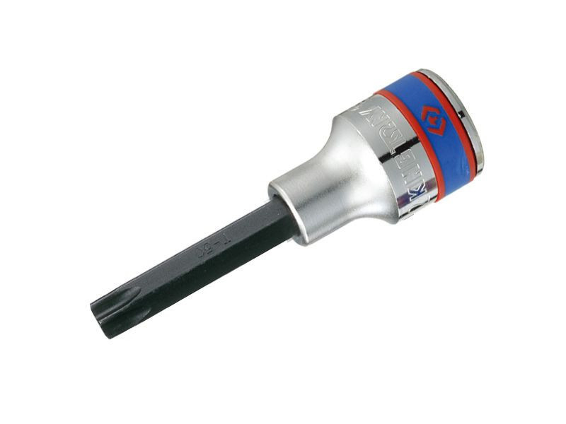 A King Tony 403345 Torx bitfeje, 1/2" meghajtóval, T45-ös mérettel és 80 mm hosszúsággal. Kiváló minőségű anyagból készült, ideális a Torx csavarok gyors és pontos meghúzására vagy eltávolítására. A hosszú kialakítás segít a mélyebben elhelyezkedő csavarok elérésében, biztosítva a megbízható és tartós használatot.