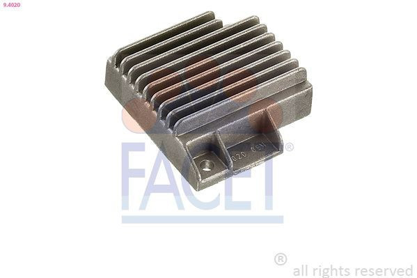 A FACET 9.4020 típust elsősorban korai elektronikus gyújtásrendszerrel szerelt európai járművekben alkalmazzák, például Fiat, Opel, Volkswagen vagy Renault modellekben. Az 5 pólusú kialakítás jellemző a '90-es évek több típusánál alkalmazott gyújtásmodulokra.