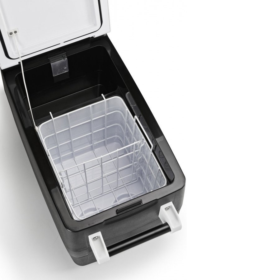 Uvnitř jsou dva chladící prostory (cca 40l a 7l). V menší přihrádce (7l) je teplota vyšší o 5-10°C oproti hlavnímu chladícímu prostoru (40l). Součástí je vyjmatelný drátěný koš s přepážkou. Vnitřní prostor autochladničky je osazen LED osvětlením. Do autochladničky bez problémů umístíte 1,5l i 2l PET lahve.