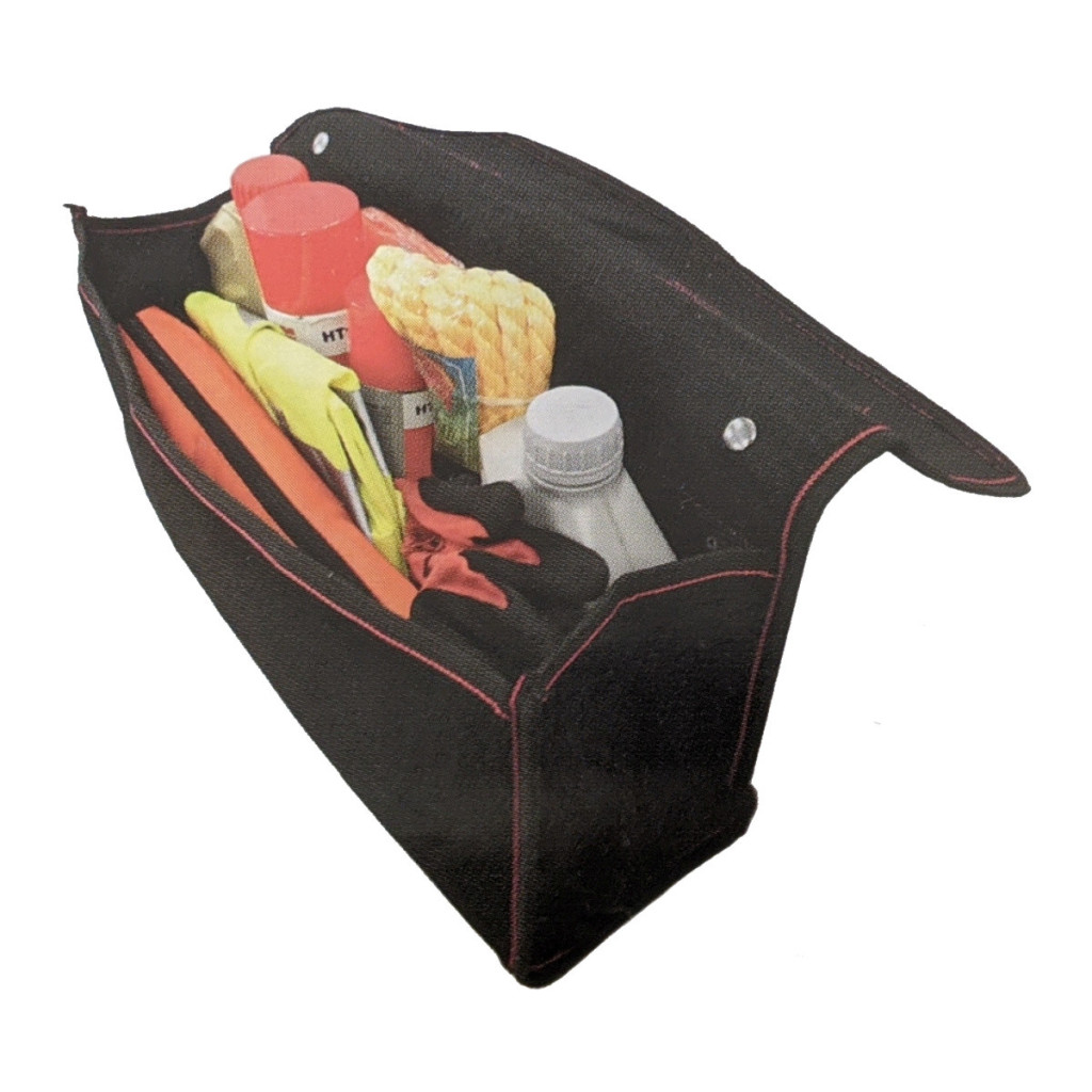 Praktikus táska strapabíró és tartós anyagból, szövetből készült fogantyúval. A csomagtartóba szerszámok, elsősegélydoboz, tűzoltó készülék és egyéb nélkülözhetetlen felszerelések tárolására tervezték.