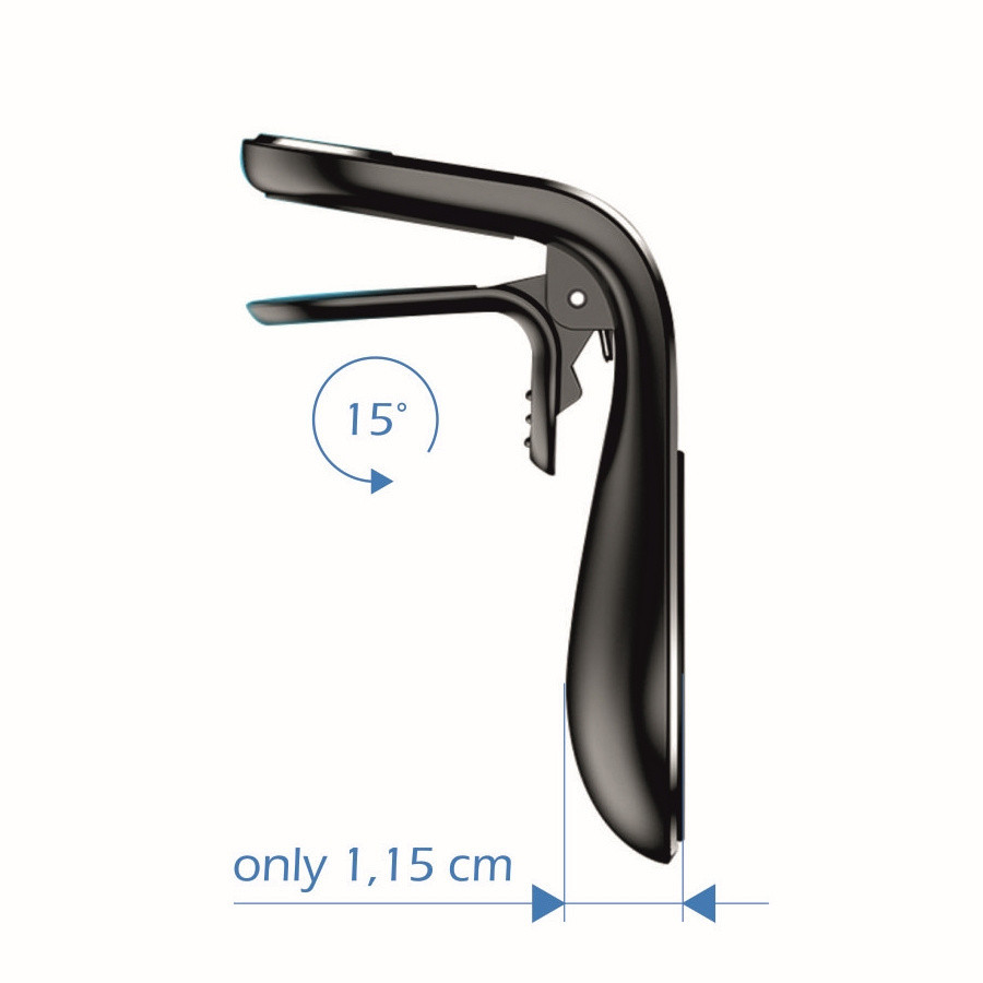 Az univerzális rögzítőmechanizmus lehetővé teszi a vékonyabb és vastagabb szellőzőrácsokhoz való csatlakoztatást. A csomag tartalmaz 2 öntapadós fémlemezt is, amelyeket a telefon tokja alá vagy a hátlapjára helyezve akár két különböző eszköz használatát is lehetővé teszi a tartóval.