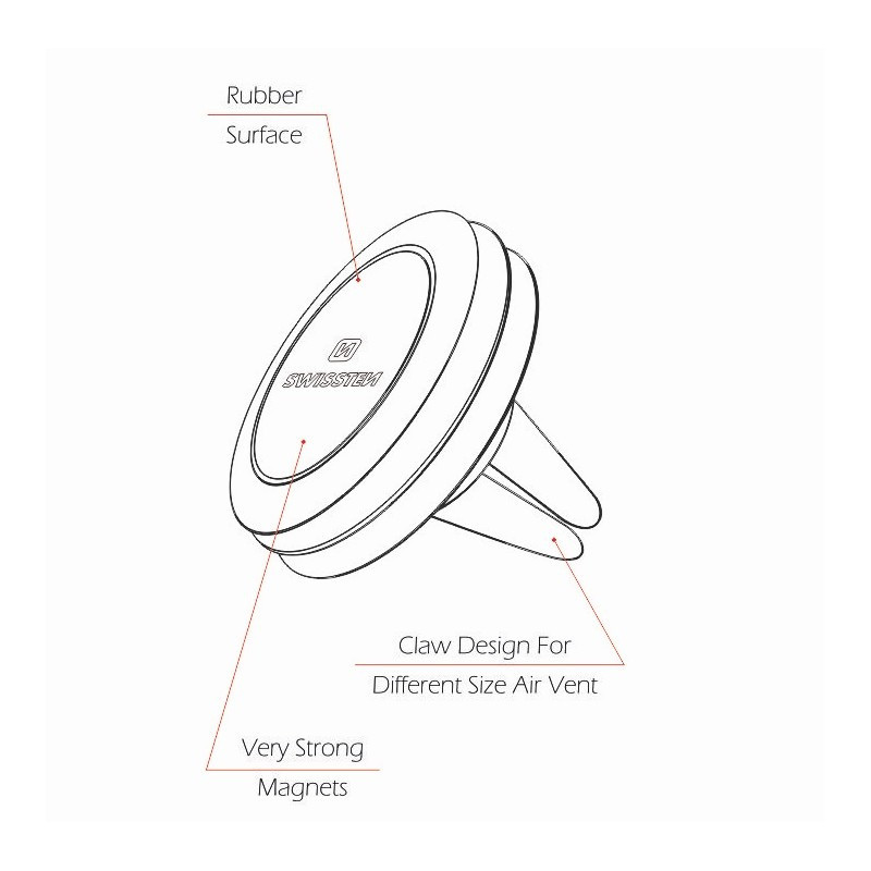 A Swissten mágneses telefontartó erős és biztonságos rögzítést biztosít az autó szellőzőrácsán. Az erős mágnes megbízhatóan tartja a telefont, miközben nem befolyásolja annak működését. Kompakt, elegáns kialakításának köszönhetően nem zavarja a kilátást, és könnyen használható navigációhoz vagy hívásokhoz vezetés közben.