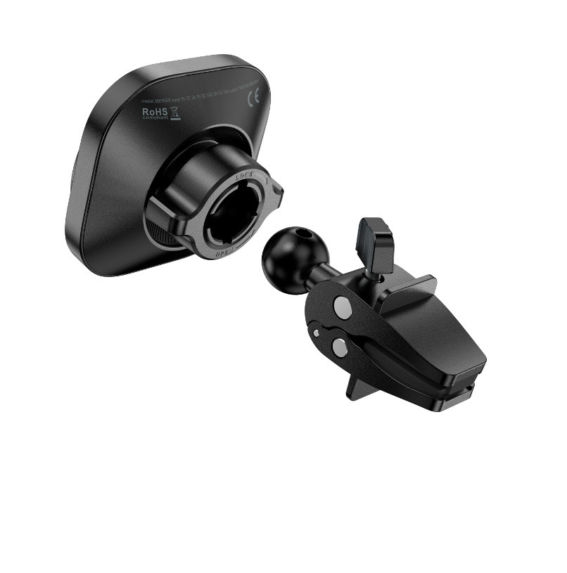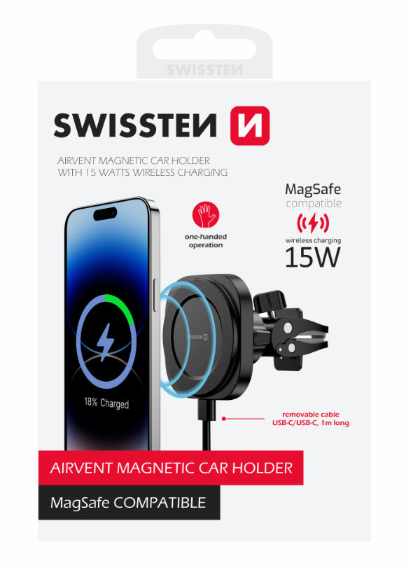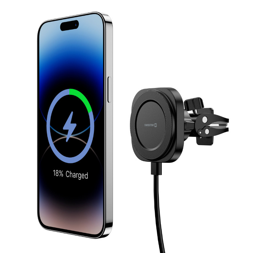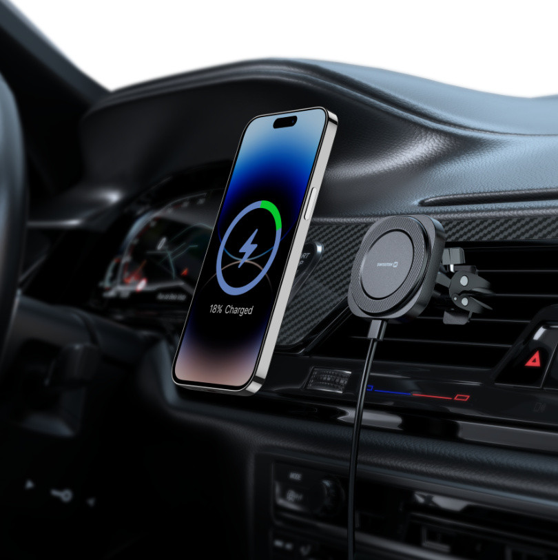A vezeték nélküli töltéssel rendelkező autós tartót úgy tervezték, hogy a szellőzőnyílásba lehessen helyezni. A tartó 15 W-os gyorstöltéssel és levehető kábellel rendelkezik. Kompatibilis a MagSafe-fel .