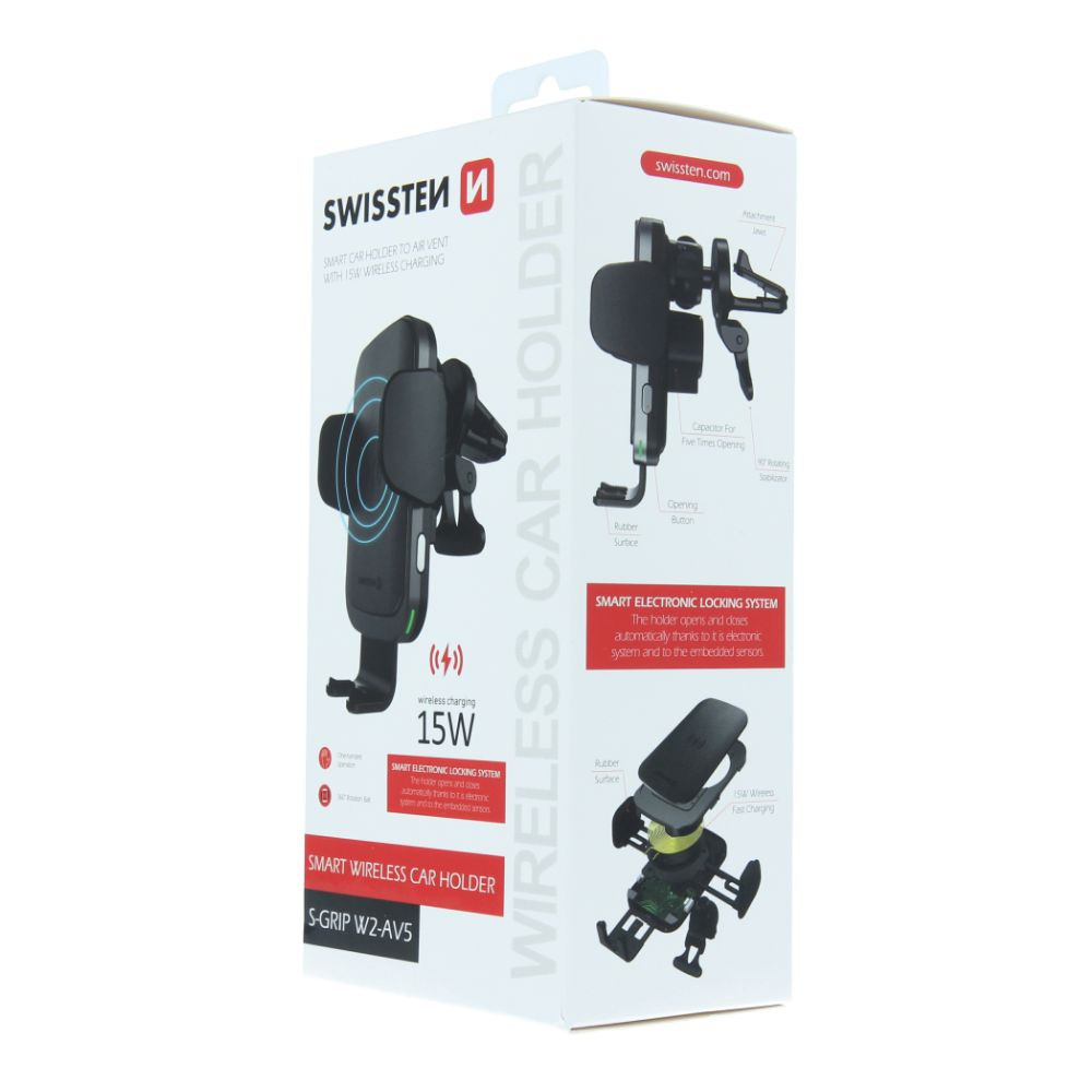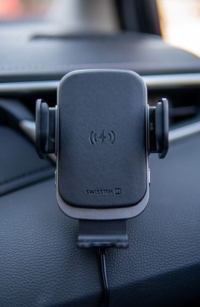 Autós tartó vezeték nélküli töltéssel és önrögzítő mechanizmussal, a szellőzőnyílásba helyezéshez.