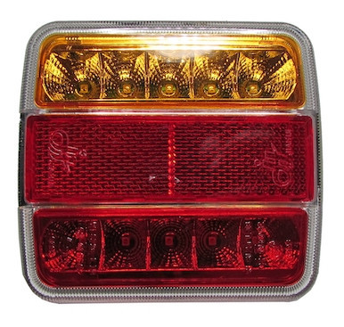 Kompakt, 100x90 mm-es LED hátsólámpa, 4 funkcióval. Univerzális használatra utánfutókhoz, mezőgazdasági gépekhez.