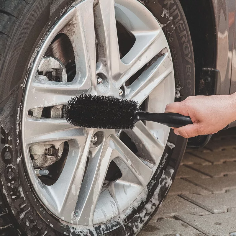 Ez a 270 mm hosszú, hajlítható felnitisztító kefe ideális eszköz a járművek alapos keréktisztításához. A rugalmas kialakítás lehetővé teszi a nehezen elérhető helyek, például a felni belső részeinek könnyű tisztítását. A puha, mégis tartós sörték hatékonyan távolítják el a szennyeződéseket anélkül, hogy károsítanák a felületet. Ergonomikus markolata kényelmes fogást biztosít, megkönnyítve a használatot.