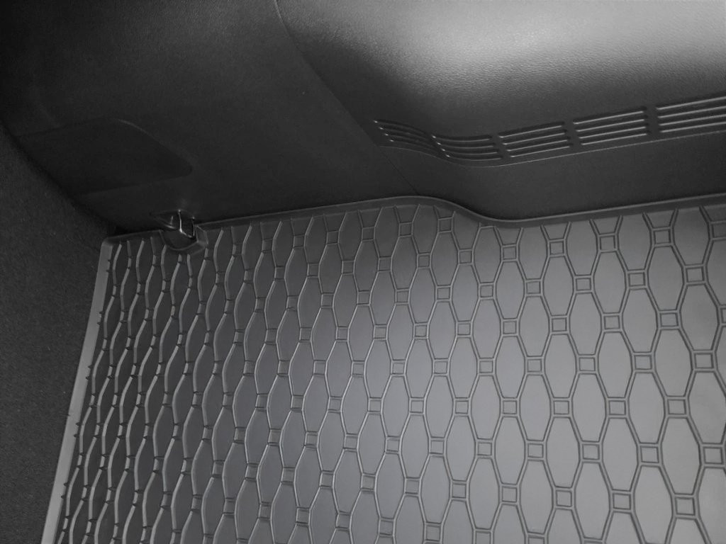 A csomagtértálca felülete jellegénél fogva megakadályozza a csúszást és a rakomány spontán elmozdulását kanyarokban vagy fékezéskor.