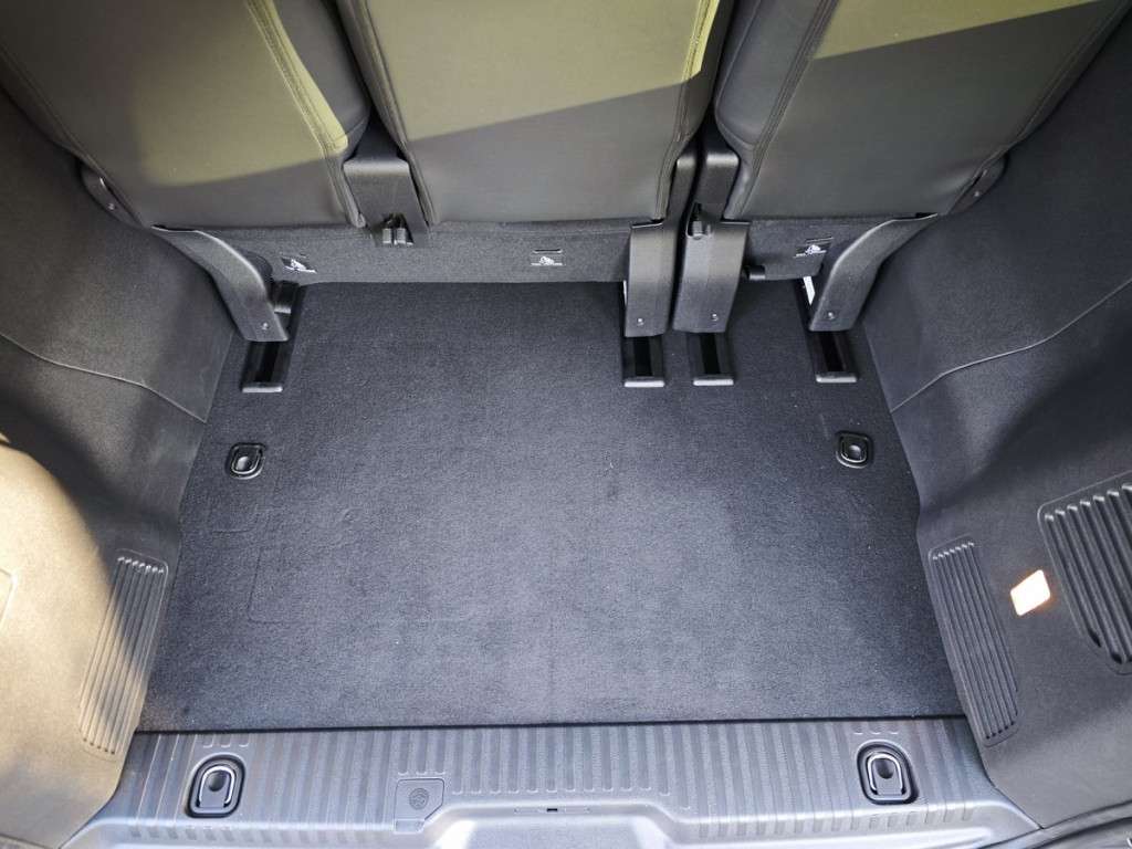 A csomagtértálca felülete érdes, csúszásmentes textúrájú, ami bizonyos mértékig megakadályozza, hogy a rakomány spontán elmozduljon a kanyarokban.