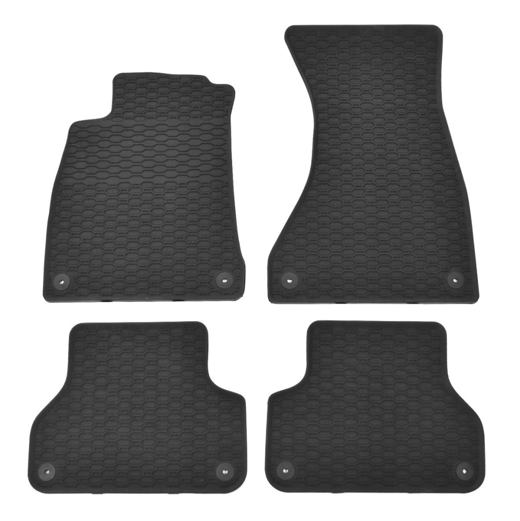 Robusztus méretpontos gumiszőnyeg garnitúra az Audi A4-es modellhez.Akárpitok fésűs kialakításúak, ami megakadályozza, hogy a víz vagy az olvadó hó átfolyjon a szőnyegen. Az autószőnyegek pereme körülbelül 1 cm magas.