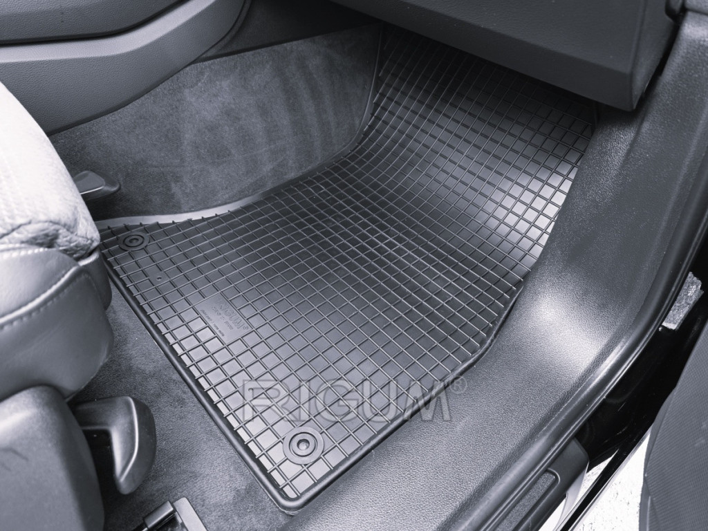 Kiváló minőségű gumi autószőnyegek a Škoda Enyaq iV-hez . Az autószőnyegek hagyományos (négyzet alakú) kialakításúak , amelyek megakadályozzák a víz kiömlését vagy csöpögését. olvadó hó a szőnyegeken. Az autószőnyegek széle körülbelül 1 cm magas. A RIGUM autószőnyegek egyedi gyártásúak és pontosan illeszkednek a jármű belső terébe. Az autószőnyegeket PVC használata nélkül préselik.