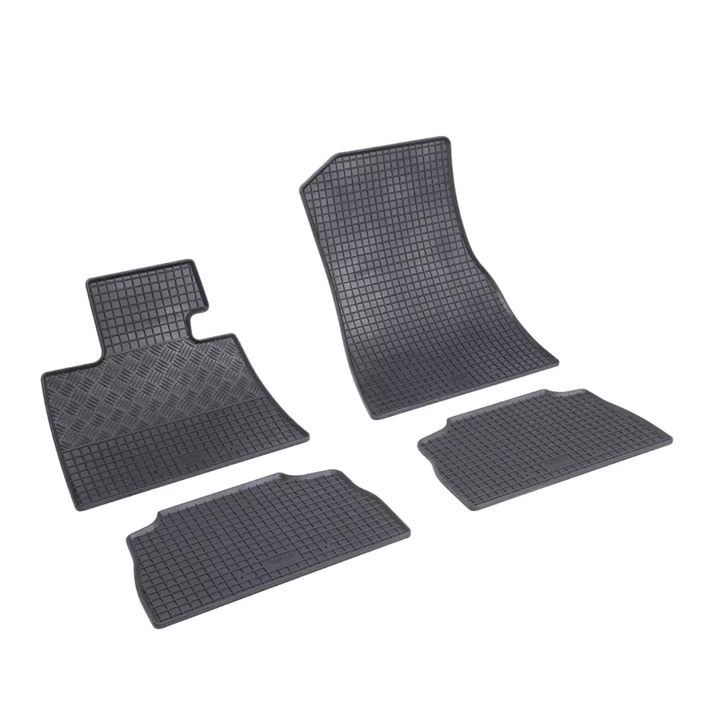 Kiváló minőségű gumi autószőnyegek BMW X5- höz , amelyet 1999 és 2007 között gyártottak. Az autószőnyegek  hagyományos (négyzet alakú) kialakításúak , amely megakadályozza a víz kifolyását vagy a hó elolvadását a szőnyegeken. Az autószőnyegek széle körülbelül  1 cm  magas. A RIGUM autószőnyegek egyedi gyártásúak és pontosan illeszkednek a jármű belső terébe. Az autószőnyegeket PVC használata nélkül préselik.