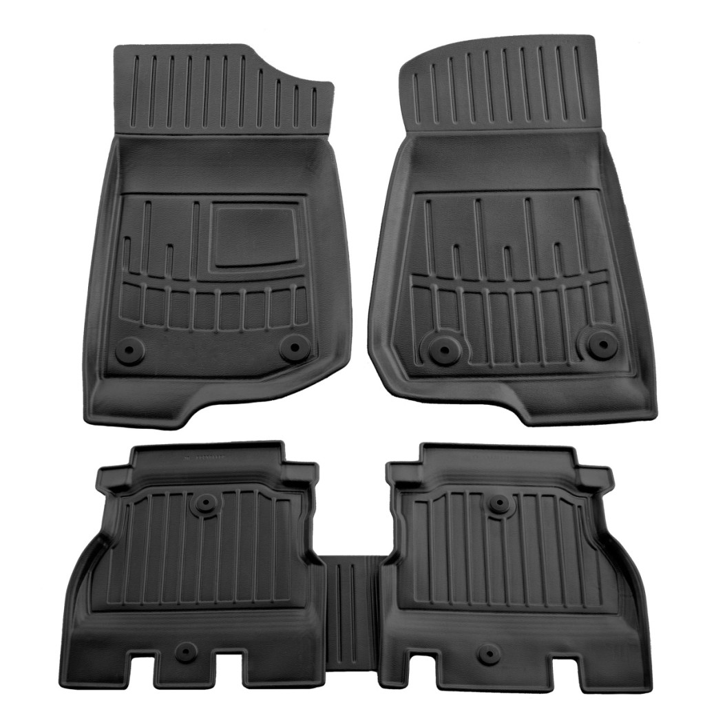 Jeep|Wrangler|2019-|Gumi autószőnyegek eredeti, bőr textúrát utánzó dizájnnal. 3 cm-rel megemelt peremmel és a középső alagút feletti borítással rendelkeznek.