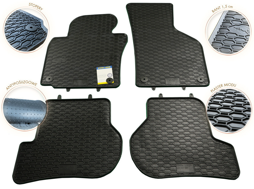 Rostos méretpontos gumiszőnyeg Škoda Octavia II. Az lap alakú kialakításuk megakadályozza, hogy a víz vagy az olvadó hó átfolyjon a szőnyegekre. Az autószőnyegek széle kb. 1