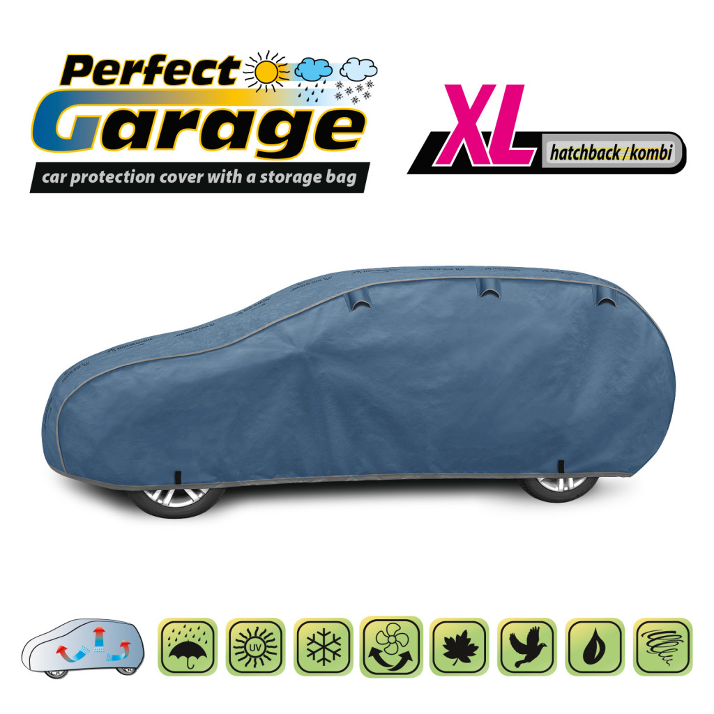 Perfect Garage autóponyva a Kegel-Błażusiak prémium kategóriás terméke, amely 4 rétegű, megerősített szerkezetével és szellőzőnyílásaival a legmagasabb szintű védelmet biztosítja járművének. A huzat teljesen vízálló, ugyanakkor páraáteresztő, így megakadályozza a nedvesség felgyülemlését a ponyva alatt, miközben szárazon tartja a karosszériát minden időjárási körülmény között.