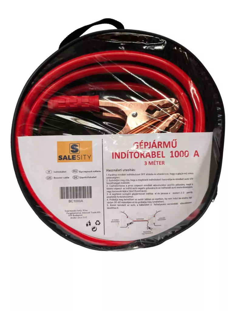 Ez a 1000 amperes indítókábel 3 méter hosszúságú, és ideális lemerült akkumulátorú járművek indításához. A kábel 13 mm-es vastagságú, belső erei 0,3 mm x 200 mm méretűek, amelyek biztosítják a megfelelő áramátvitelt. A termék praktikus cipzáras táskában kerül forgalomba, megkönnyítve a tárolást és szállítást.