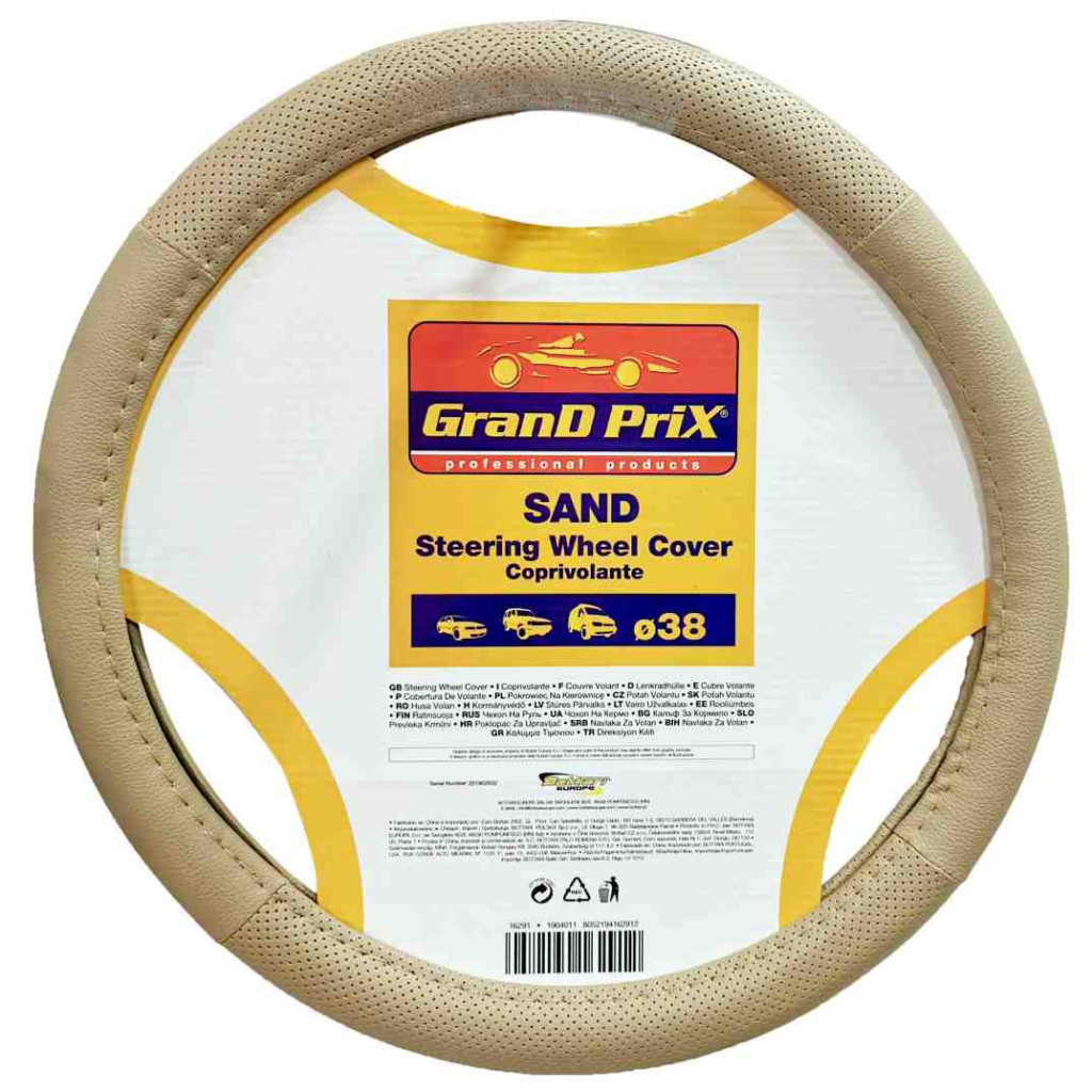 Egyszerű beige színű kormányvédő 38 cm-es kormánykerékre. Klasszikus, letisztult stílus.