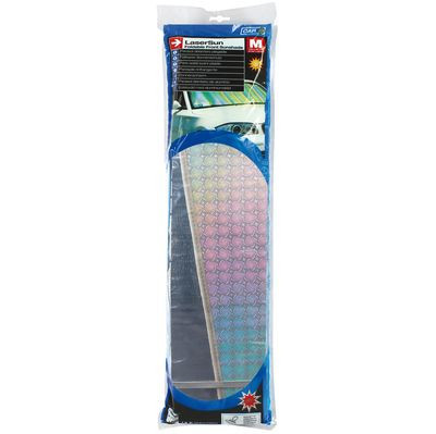 A "Laser" szélvédő napárnyékoló 145x60 cm méretben hatékonyan védi autója belső terét a közvetlen napsugárzástól és az UV-sugaraktól, csökkentve a hőmérsékletet és megakadályozva a műszerfal és az ülések fakulását. Könnyen felszerelhető a mellékelt tapadókorongok segítségével, és használaton kívül kompakt méretűre összehajtható a kényelmes tárolás érdekében. A "Laser" dizájn modern megjelenést kölcsönöz járművének.