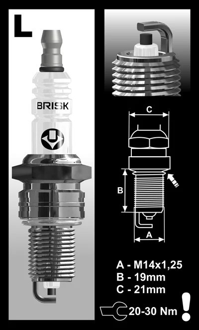 Brisk LR14YC gyújtógyertya – M14 x 1,25 – menethossz: 19 mm – kulcsnyílás: 20,8 mm (kompatibilitás: lásd a leírásban!)