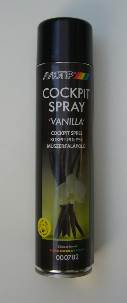 Vanília illatú ápoló spray az autók műszerfalának és más műanyag alkatrészeinek tisztítására, védelmére és ápolására.