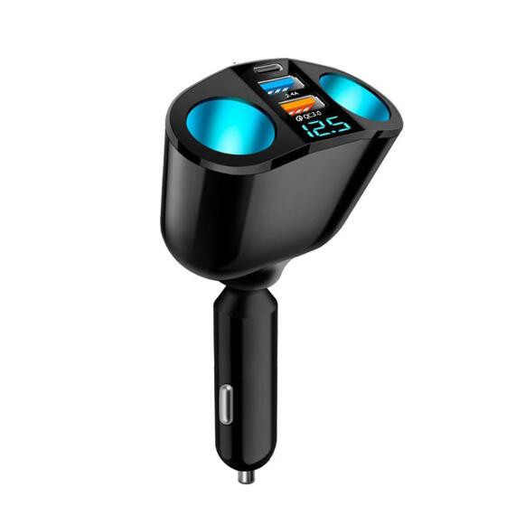 Prémium minőségű autós töltőegység, amely két USB portot, két szivargyújtó aljzatot, valamint PD és QC 3.0 gyorstöltési funkciókat kínál. 12–24 V rendszerű gépjárművekhez használható, így személyautókhoz és teherautókhoz is ideális.