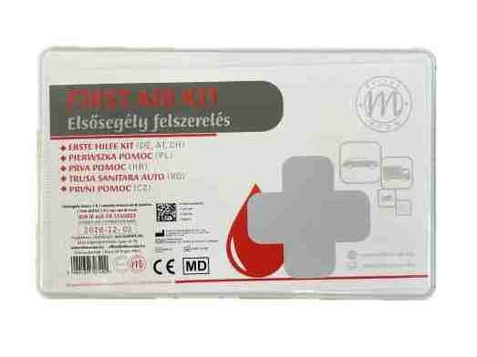 Személygépkocsik számára kötelező felszerelés. A DIN 13164 szabványnak megfelelő tartalommal, kis méretű, könnyen tárolható kivitelben.