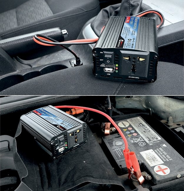 A feszültségátalakító csatlakoztatható az autó szivargyújtójához vagy közvetlenül az autó akkumulátorához. USB csatlakozóval együtt.