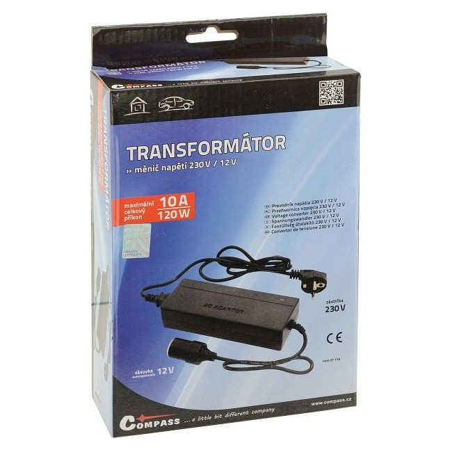 A Compass 230V / 12V (120W) feszültségátalakító lehetővé teszi 12 voltos autós eszközök használatát hagyományos hálózati aljzatról. Ideális hűtőládákhoz, kompresszorokhoz, autós töltőkhöz és egyéb 12V-os kiegészítőkhöz otthon, irodában vagy szálláson. Kompakt méretű, könnyen használható és biztonságos működést biztosít.