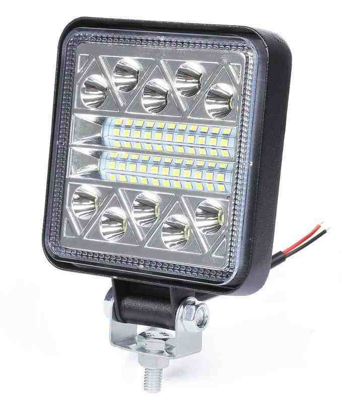 Univerzális LED munkalámpa 34 LED-del, 9-30V feszültségtartománnyal. Állítható rögzítési lehetőségekkel rendelkezik, különböző járművekre és munkagépekre.