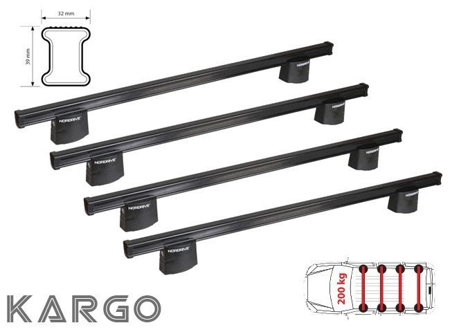 TETŐCSOMAGTARTÓK haszonjárművekhez, kisteherautókhoz és kisbuszokhoz - NORDRIVE KARGO MINŐSÉG ELÉRHETŐ ÁRON • Gazdaságos változat - acélrudak • Teherbíró megoldás kifejezetten haszonjárművekhez • Horganyzott rúd műanyag védelemmel bevonva • Optimális ár- teljesítmény arány • Magas terhelhetőség • A tetőcsomagtartók típusosak, közvetlenül a jármű gyártója által meghatározott eredeti rögzítési pontokhoz vannak rögzítve
