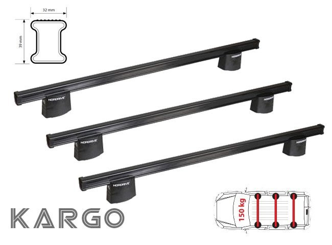 TETŐCSOMAGTARTÓK haszonjárművekhez, kisteherautókhoz és kisbuszokhoz - NORDRIVE KARGO MINŐSÉG ELÉRHETŐ ÁRON • Gazdaságos változat - acélrudak • Teherbíró megoldás kifejezetten haszonjárművekhez • Horganyzott rúd műanyag védelemmel bevonva • Optimális ár- teljesítmény arány • Magas terhelhetőség • A tetőcsomagtartók típusosak, közvetlenül a jármű gyártója által meghatározott eredeti rögzítési pontokhoz vannak rögzítve