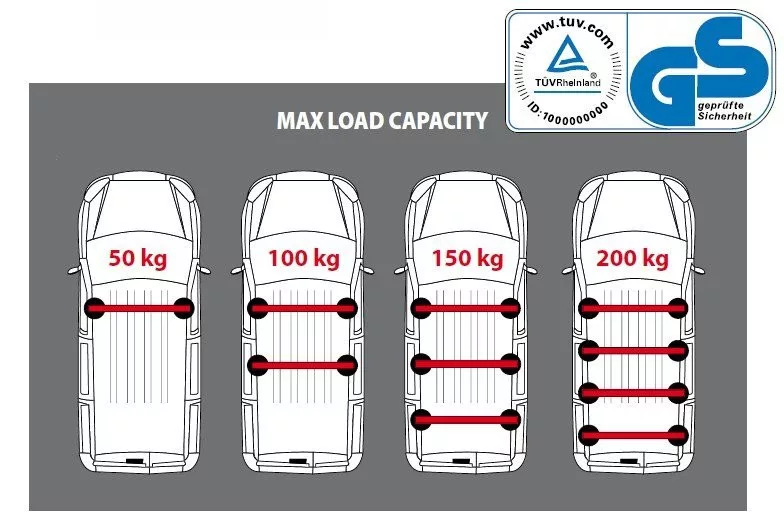Minőségi acél tetőcsomagtartó Nordrive Kargo tömör és masszív horganyzott acélrudak műanyag borítással bevonva. A rudak mérete 39 x 32 mm. Adott típusú járműhöz tervezett, nagy terhelésű talpszettek (2 - rudas = 100kg / 3 - rudas = 150kg / 4 rudas = 200kg) A tetőcsomagtartó egy talpszettből áll, amelyet egy adott autóhoz terveztek és mindig az autógyártó által meghatározott pontokra rögzítik. A csomagtartó terhelése rudanként 50kg. Ha 2 rúddal rendelkezik a tetőcsomagtartó teherbírása 100 kg / 3 rúd 150 kg / 4 rúd 200 kg. A rúd mérete 39 x 32 mm. A rudak speciális profillal rendelkeznek, így a tartozékok és a talpszett szilárdan és biztonságosan rögzíthetők. Kifejezetten haszonjárművekhez tervezett tetőcsomagtartók Tökéletes segítség vállalkozása számára, nagy terhelhetőséggel és nagyon praktikus felhasználással. TARTOZÉKOK KARGO tetcsőmagtartókhoz