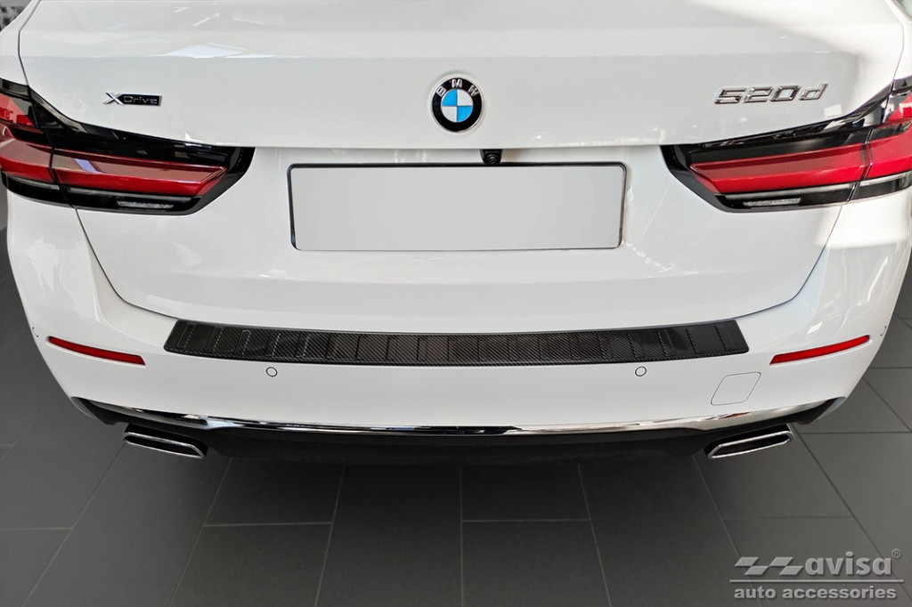 Hátsó lökhárítóra készült védőcsík BMW 5-hoz karbonból.
