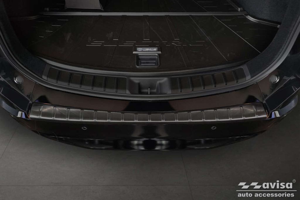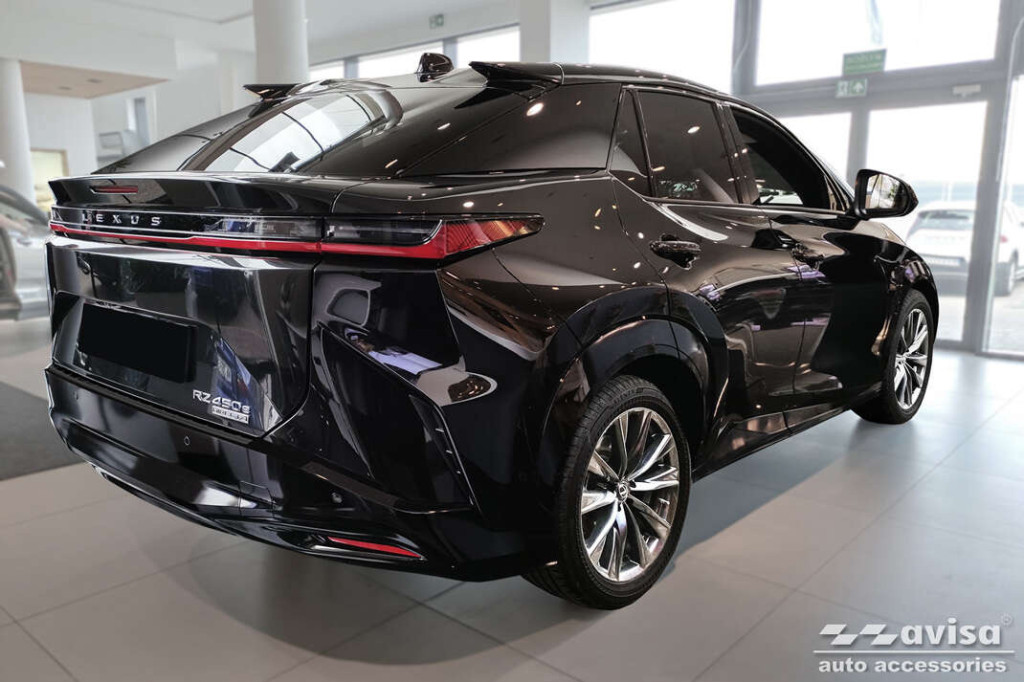 Hátsó lökhárítóra készült védőcsík Lexus RZ-hozsötét rozsdamentes acélból.
