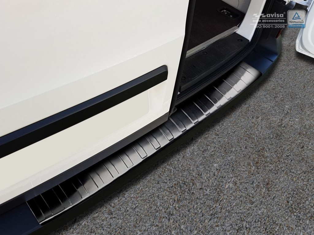 Hátsó lökhárítóra készült védőcsík MAN TGE-hozsötét rozsdamentes acélból.