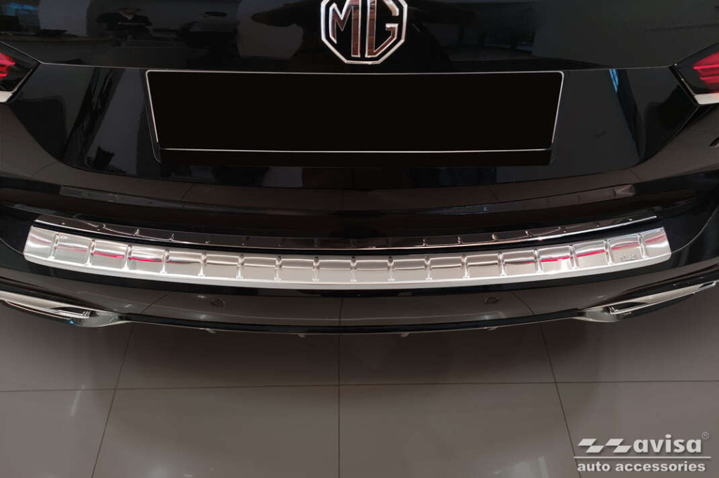 Hátsó lökhárítóra készült védőcsík MG HS-hozrozsdamentes acélból.