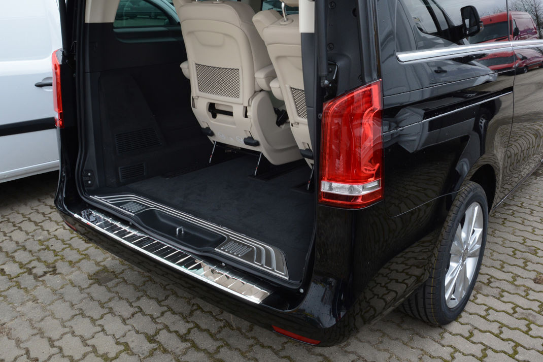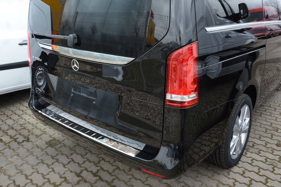 Mercedes|Vito / Viano / V-Class|2014-|Rozsdamentes acél védőcsík. Védelem a lökhárító és a csomagtér peremének karcolódása ellen.