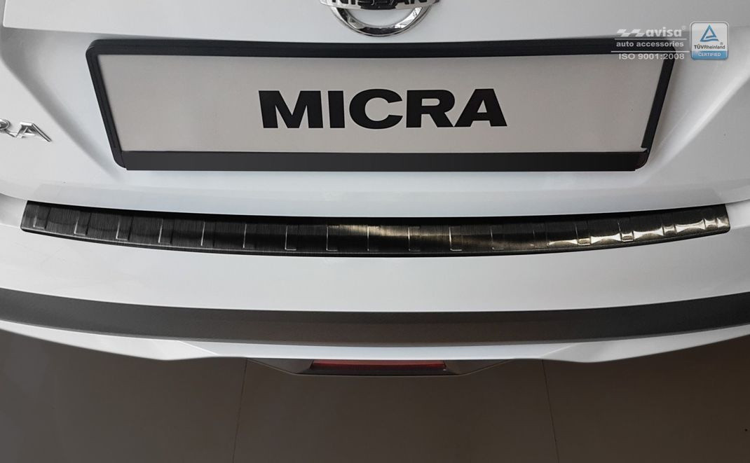 Hátsó lökhárítóra készült védőcsík Nissan Micra-hozrozsdamentes acélból.