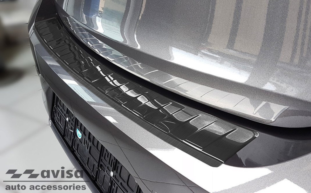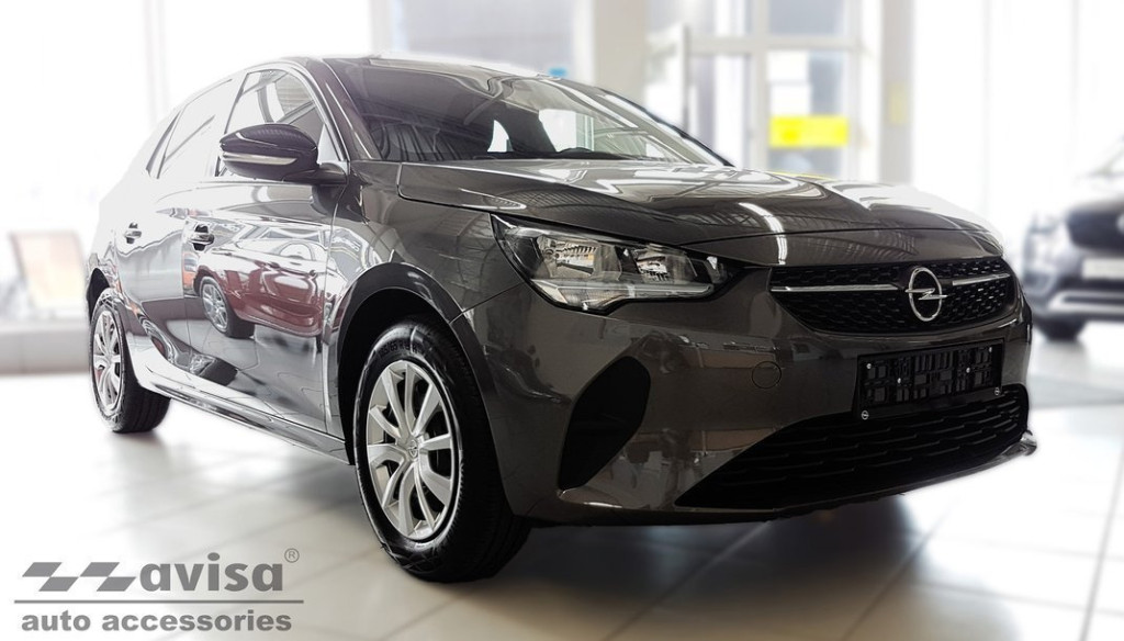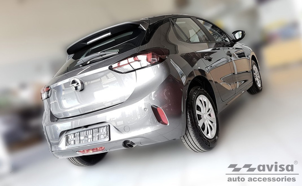 Hátsó lökhárítóra készült védőcsík Opel Corsa F-hoz sötét rozsdamentes acélból.