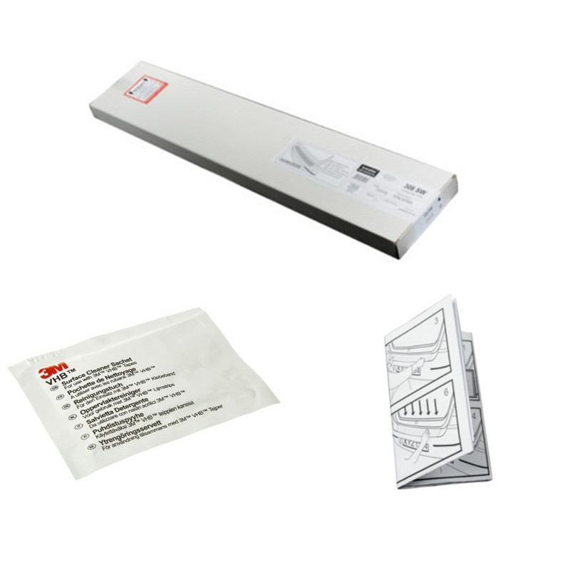 A védőcsík felszerelése 3M kétoldalas ragasztószalaggal történik, amely a csomag részét képezi. A védőcsík használatával óvja a lökhárító széleit, így megelőzve a javítási költségeket.