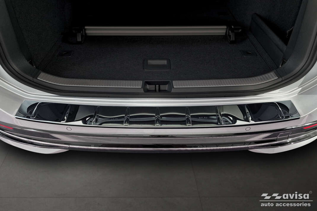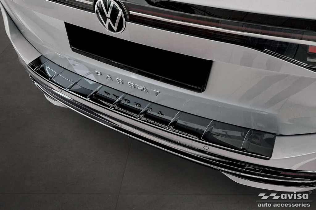 Hátsó lökhárítóra készült védőcsík VW Passat B9 -hoz sötét krómozott rozsdamentes acélból..