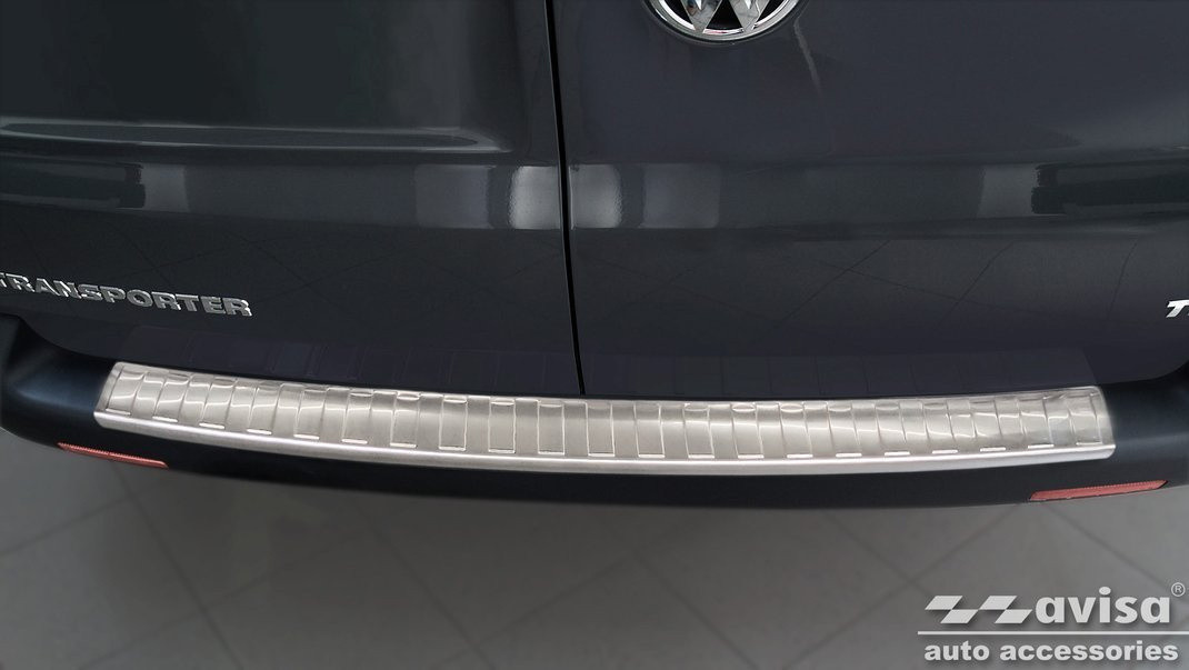 Volkswagen|Transporter T6|2015-2024|Rozsdamentes acél védőcsík. Védelem a lökhárító és a csomagtér peremének karcolódása ellen.