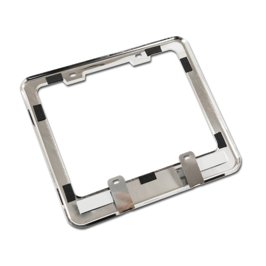 A rendszámtábla tartó (moto) rozsdamentes acélból készült, fényes, csiszolt kivitelben.