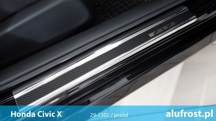 A Honda Civic küszöbdíszei acélból készülnek. A díszlécek ellenállnak minden időjárási körülménynek és nedvességnek. Megbízhatóan védelmet nyújtanak az autó használata során keletkező karcolások és mechanikai sérülések ellen.