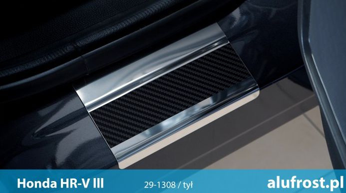 A Honda HR-V küszöbvédő sávjai karbonfóliával borított rozsdamentes acélból készülnek. A rudak ellenállnak minden időjárási viszontagságnak és nedvességnek. Megbízhatóan védelmet nyújtanak az autó használata során keletkező karcolások és mechanikai sérülések ellen.