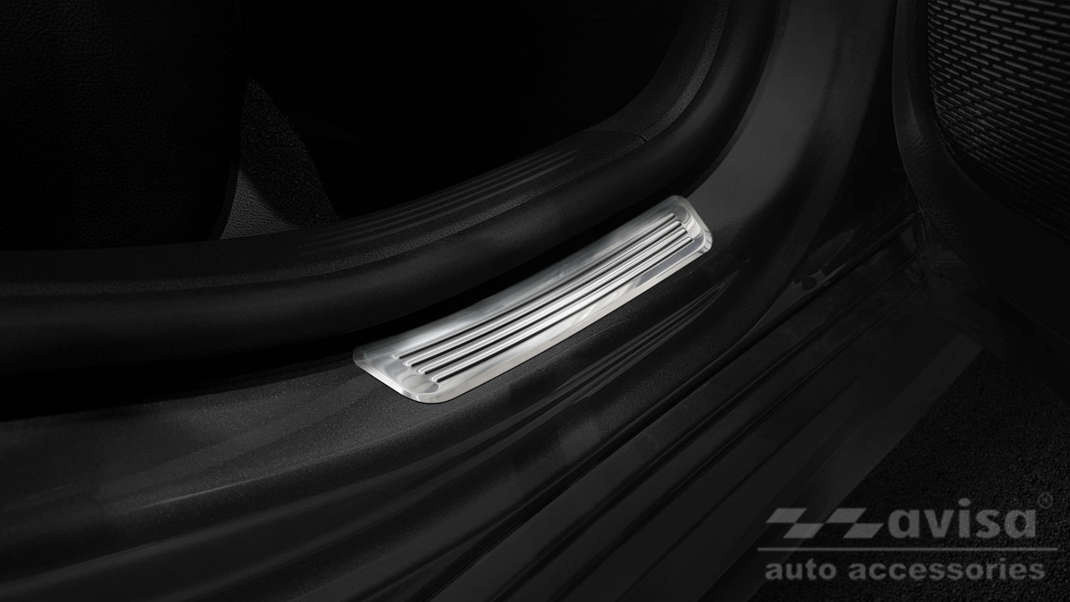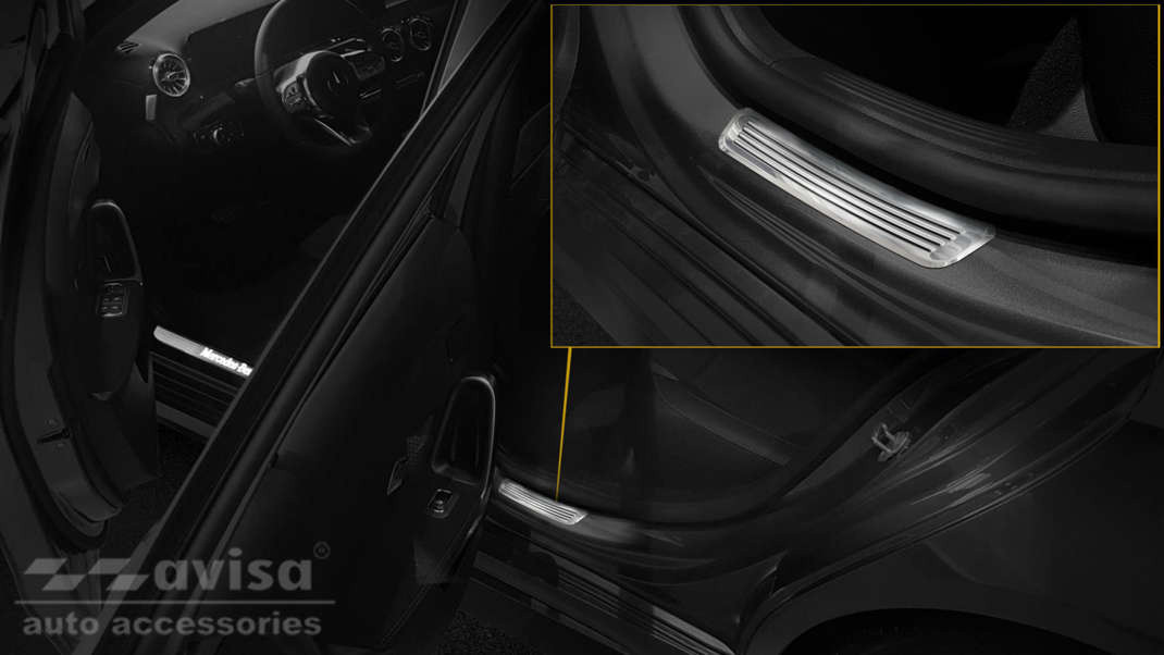 A Mercedes A-osztály küszöbdíszei acélból készülnek. A díszlécek ellenállnak minden időjárási körülménynek és nedvességnek. Megbízhatóan védelmet nyújtanak az autó használata során keletkező karcolások és mechanikai sérülések ellen.
