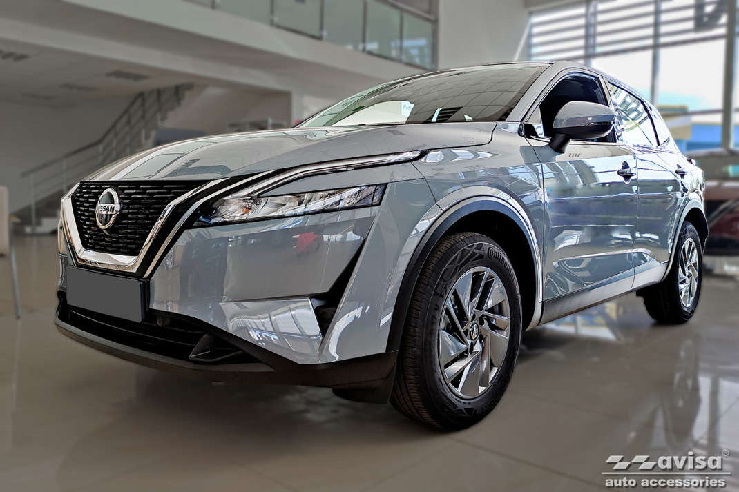 A Nissan Qashqai küszöbdíszei sötét rozsdamentes acélból készülnek. A díszlécek ellenállnak minden időjárási körülménynek és nedvességnek. Megbízhatóan védelmet nyújtanak az autó használata során keletkező karcolások és mechanikai sérülések ellen.