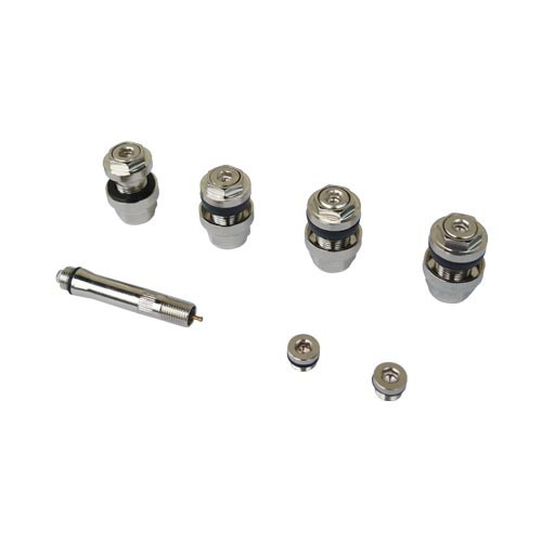 Speciális rejtett szelepkészlet BMW modellekhez. Esztétikus, alacsony profilú kialakítás, komplett készletben.