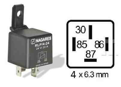 A Nagares RLP/4-24 egy 24V-os, 22A terhelhetőségű, 4-lábú relé, amelyet különböző autóipari és ipari alkalmazásokban használnak. Ez a relé megbízható kapcsolást biztosít, és alkalmas különböző elektromos áramkörök vezérlésére.