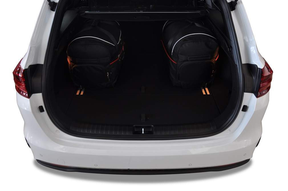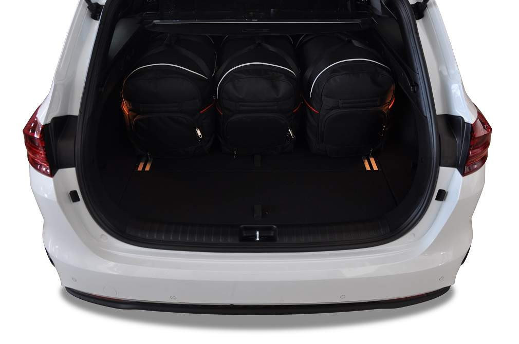 A csomagtartó hátsó részébe tervezett utazótáskák az aszimmetrikus formájúak, és követik a hátsó ülések lejtését. Az autója csomagtartójában lévő helyet akár 30%-kal hatékonyabban használja ki, mint a különböző méretű utazótáskák és csomagtartók esetében.
