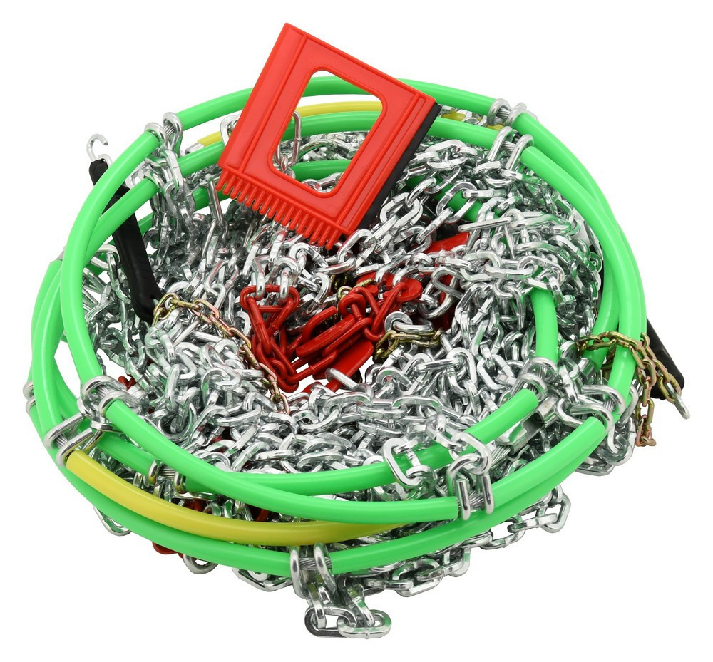 A hóláncok praktikus textil táskában vannak csomagolva, cipzárral. A hóláncokhoz ajándékként egy háromoldalú kaparó is tartozik, amely jég, hó és víz eltávolítására is alkalmas.